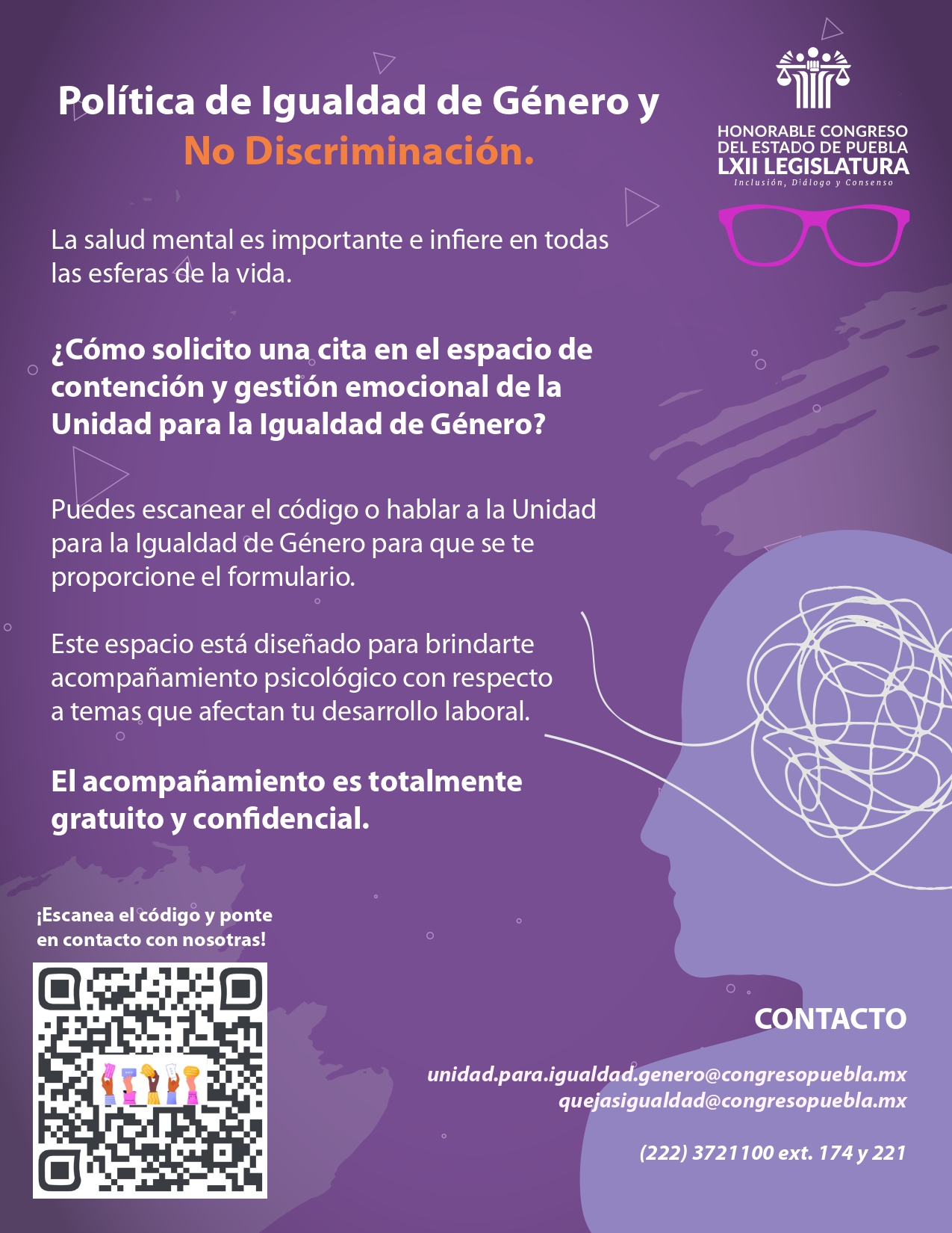 Unidad para la Igualdad de Género, Av. 32 Oriente número 202, Colonia Mártires del Trabajo, Puebla, Pue.